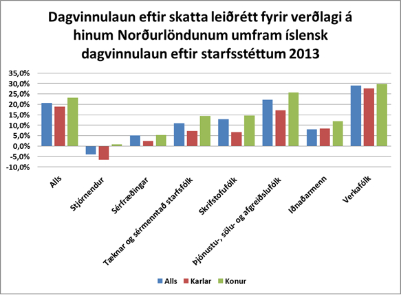 Það er athyglisvert að skoða launamun á Norðurlöndunum eftir einstaka starfsstéttum að teknu tilliti til skattkerfis áhrifa og verðlags. Á meðfylgjandi mynd má sjá muninn á dagvinnulaunum á Íslandi og að meðaltali á hinum Norðurlöndunum eftir að tekið hefur verið tillit til bæði verðlags og skatta. Það er áberandi að munurinn á dagvinnulaunum á Íslandi […]