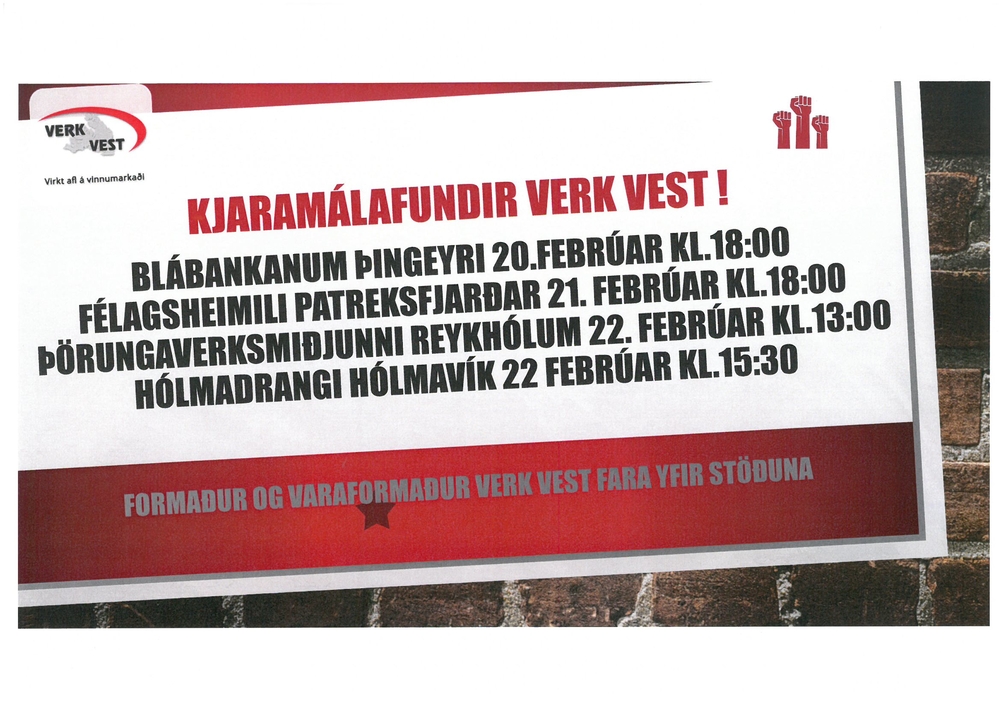 Kjaramálafundir Verk Vest 20 – 22.feb