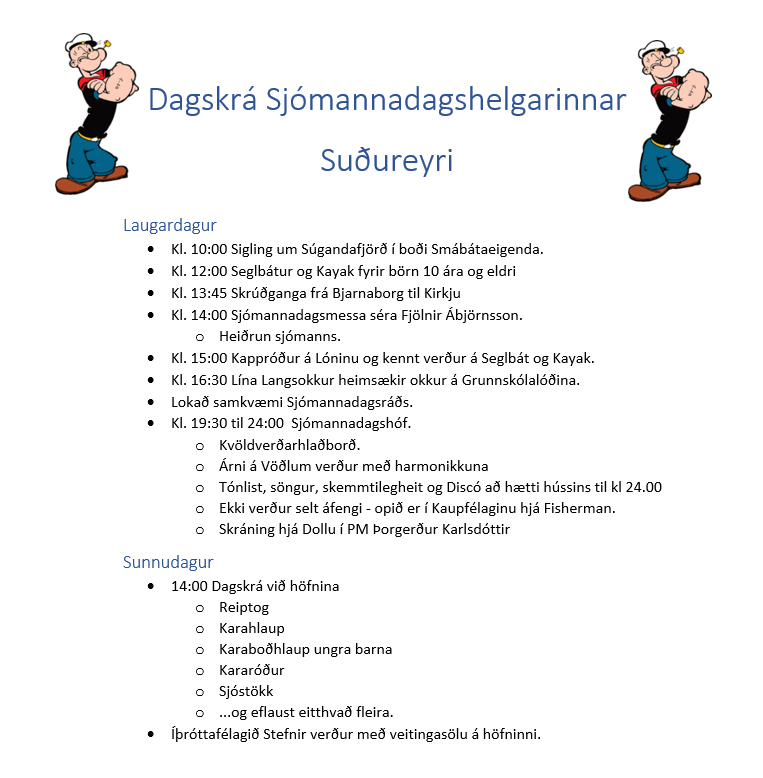 Stjórn og starfsfólk Verkalýðsfélags Vestfirðinga sendir sjómönnum og fjölskyldum þeirra árnaðaróskir á hátíðisdegi sjómanna um leið og sjómenn eru hvattir til að taka þátt í hátíðarhöldum dagsins. Gott er heilu fleyi heim að sigla.